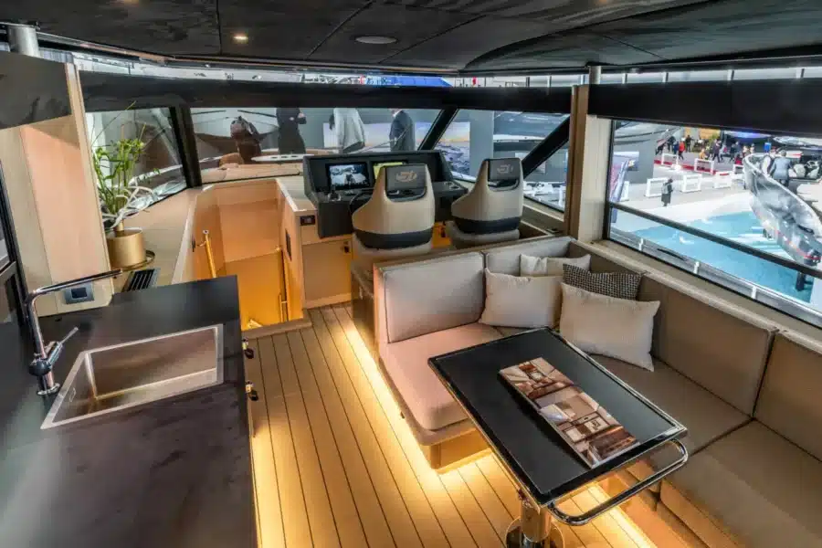 The B67 Beachclub blends the design concept of the Bronson 65 Supersports with a beachclub style sportsboat.
