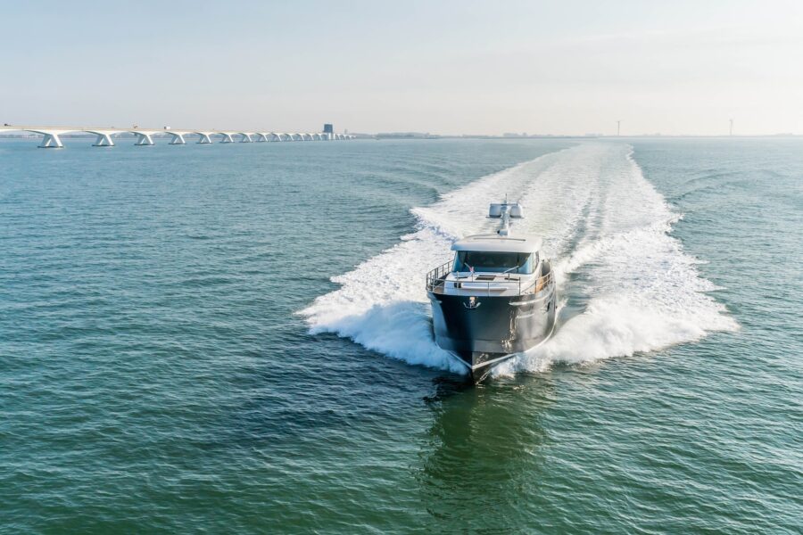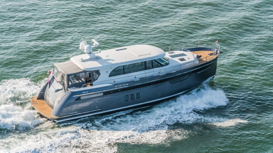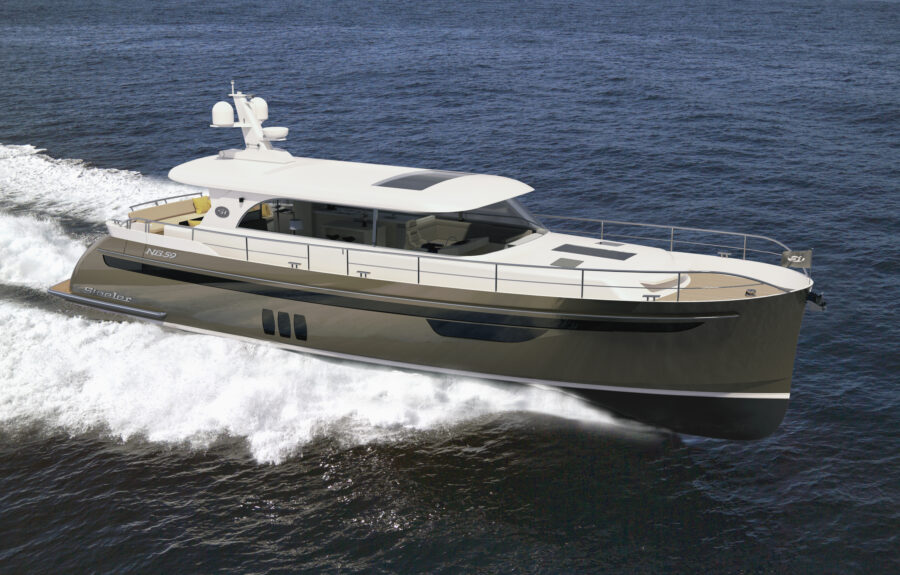 Steeler Yachts: “Underneath the elegant timeless shape of an S-design hull is a hull that is capable of accelerating to a top speed of 24 knots. Equally impressive is the fact that fuel consumption per nautical mile is almost flat from cruising speed to maximum speed.
