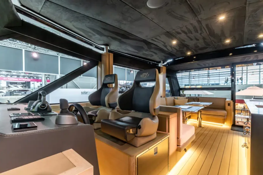 Prestaties worden gecombineerd met veel buitenruimte en een stuurhuis dat aansluit aan de buitenruimtes.